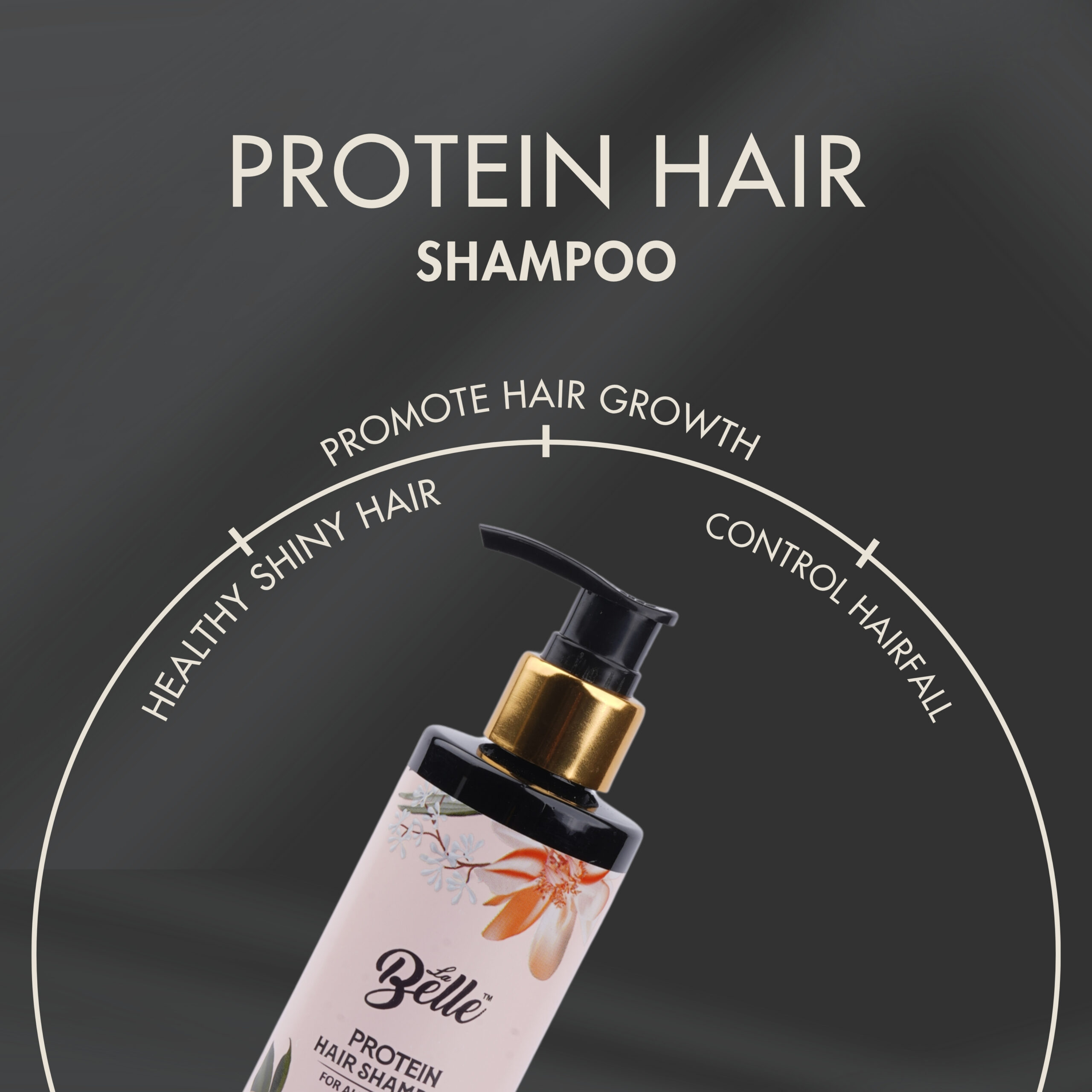 The Protein Shampoo includes Chickpea Seed Extract, Amla Fruit Extract, Licorice Root Extract, gentle surfactants such as Ammonium Lauryl Sulfate and Cocamidopropyl Betaine, Glycerin, Dimethicone, Amodimethicone, and conditioning agents like Polyquaternium-7.